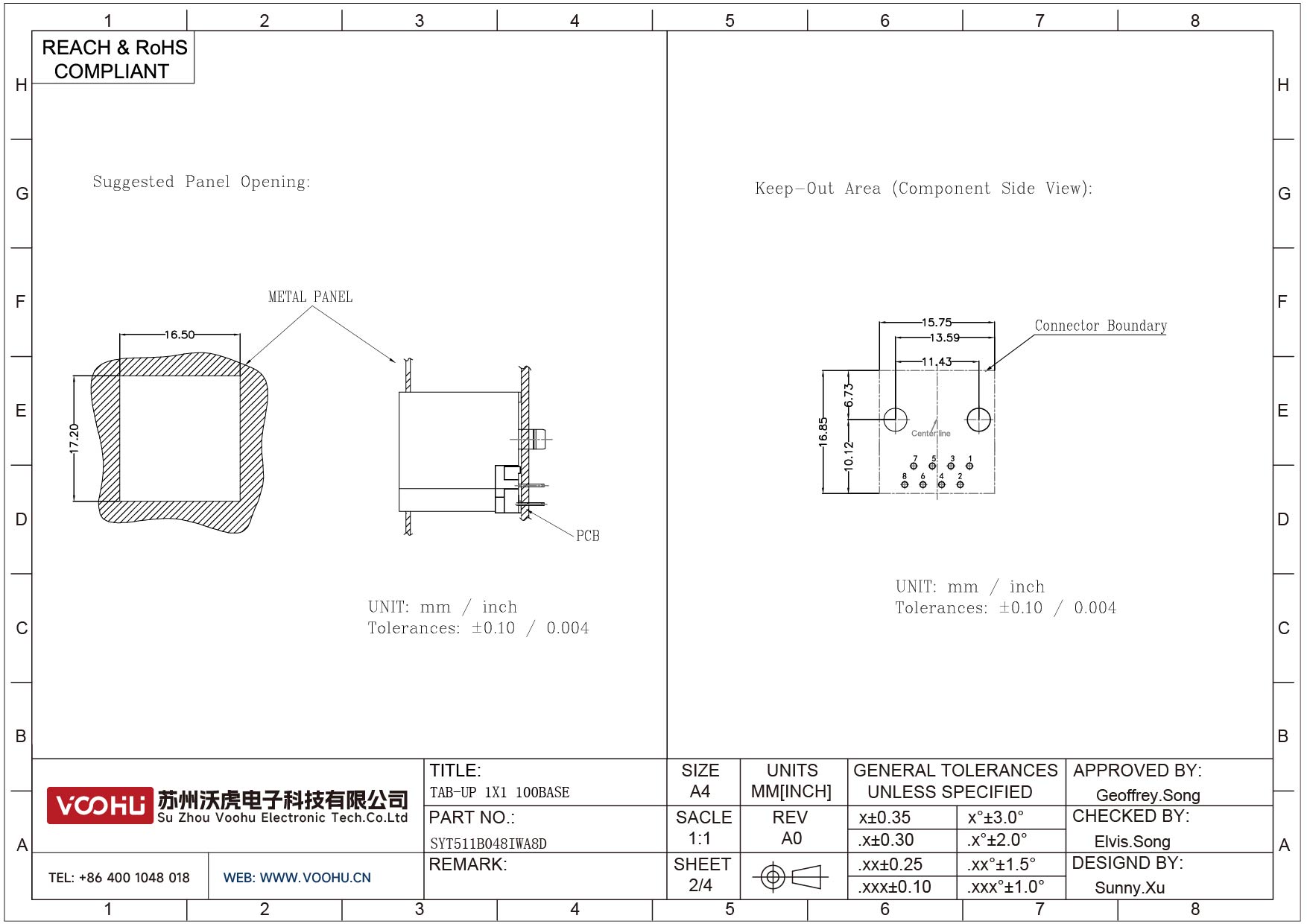SYT511B048IWA8D 180°立式 1*1 开口朝上 10/100M 无LED DIP RJ45