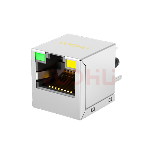 SYT60S1188AB1A6DY1008(弯脚) 90° 侧面插入 1*1 开口朝上 LED Y/G 带屏蔽 DIP RJ45(低高度)