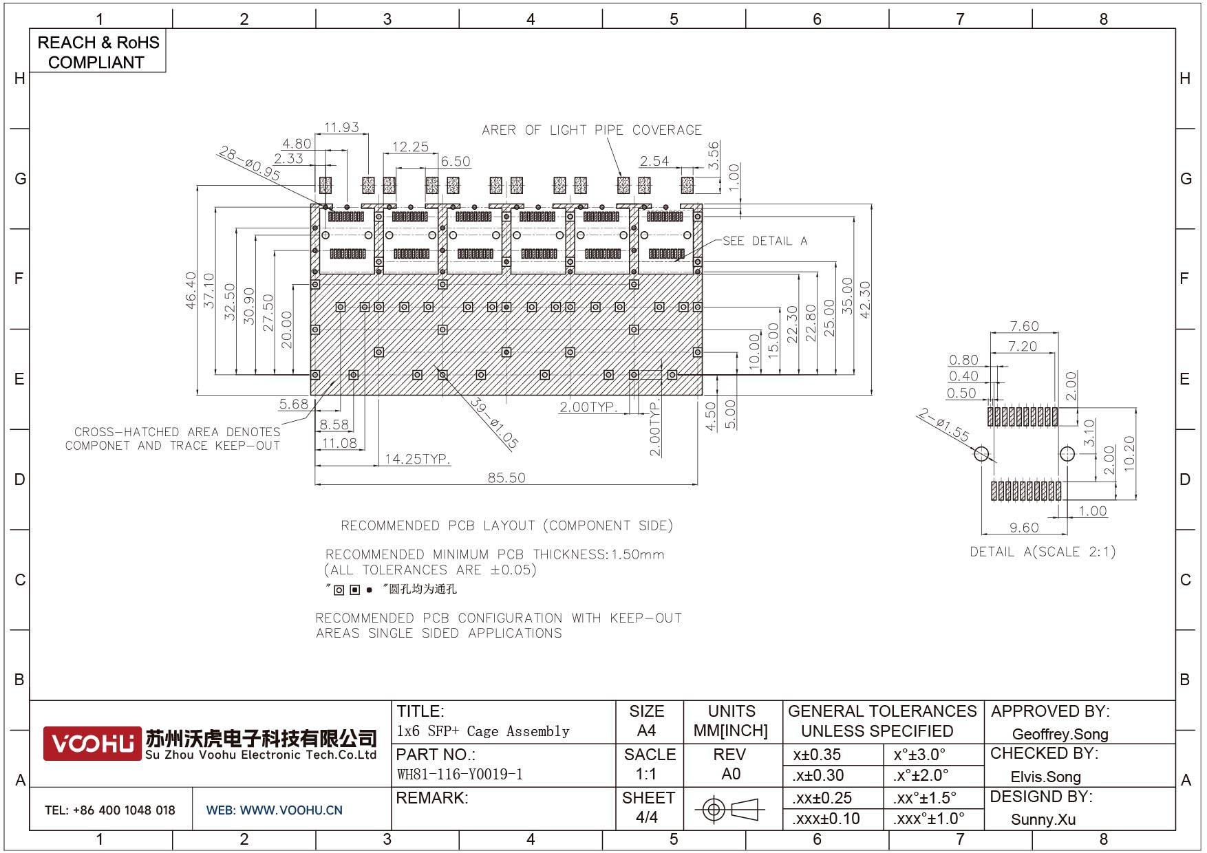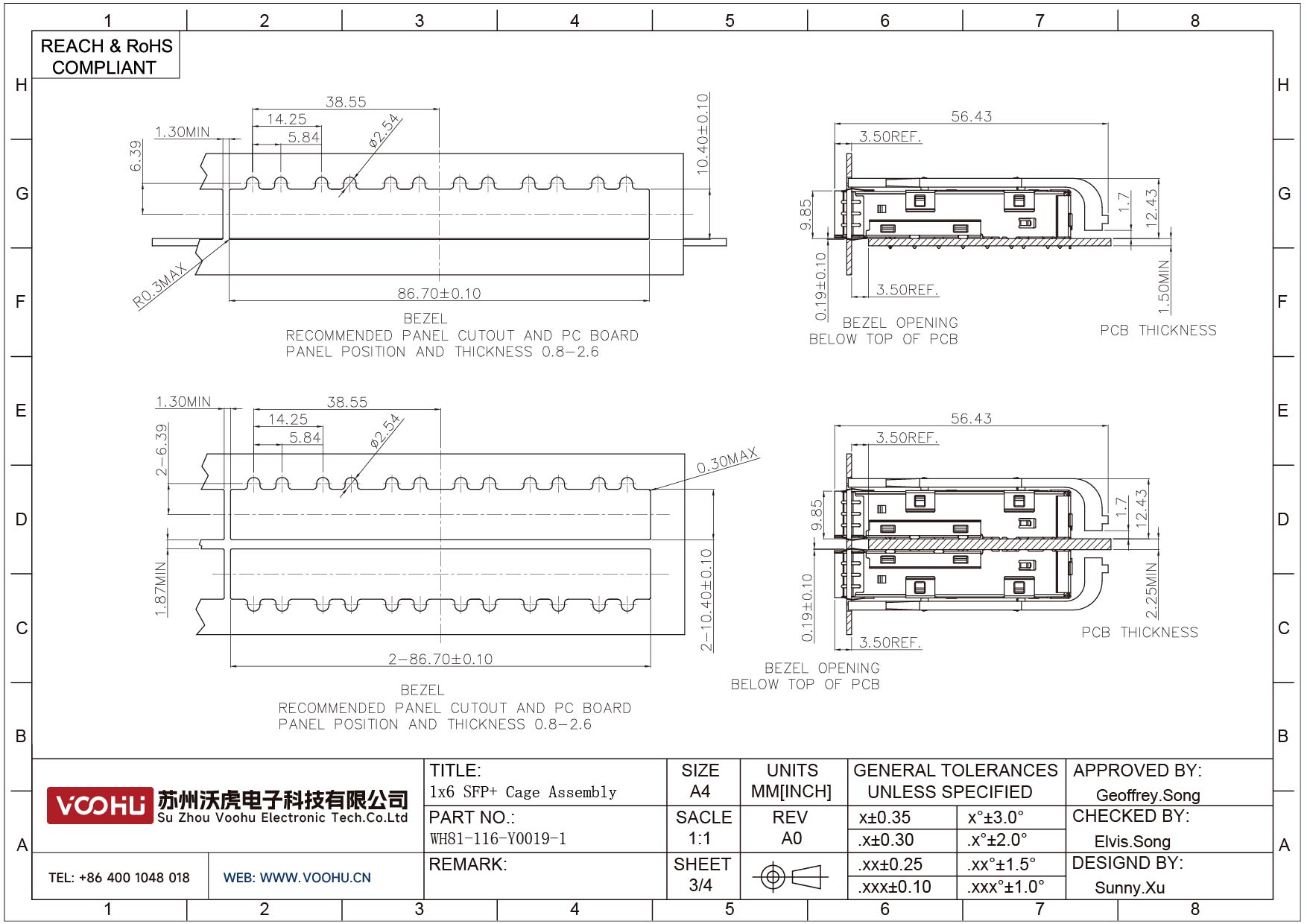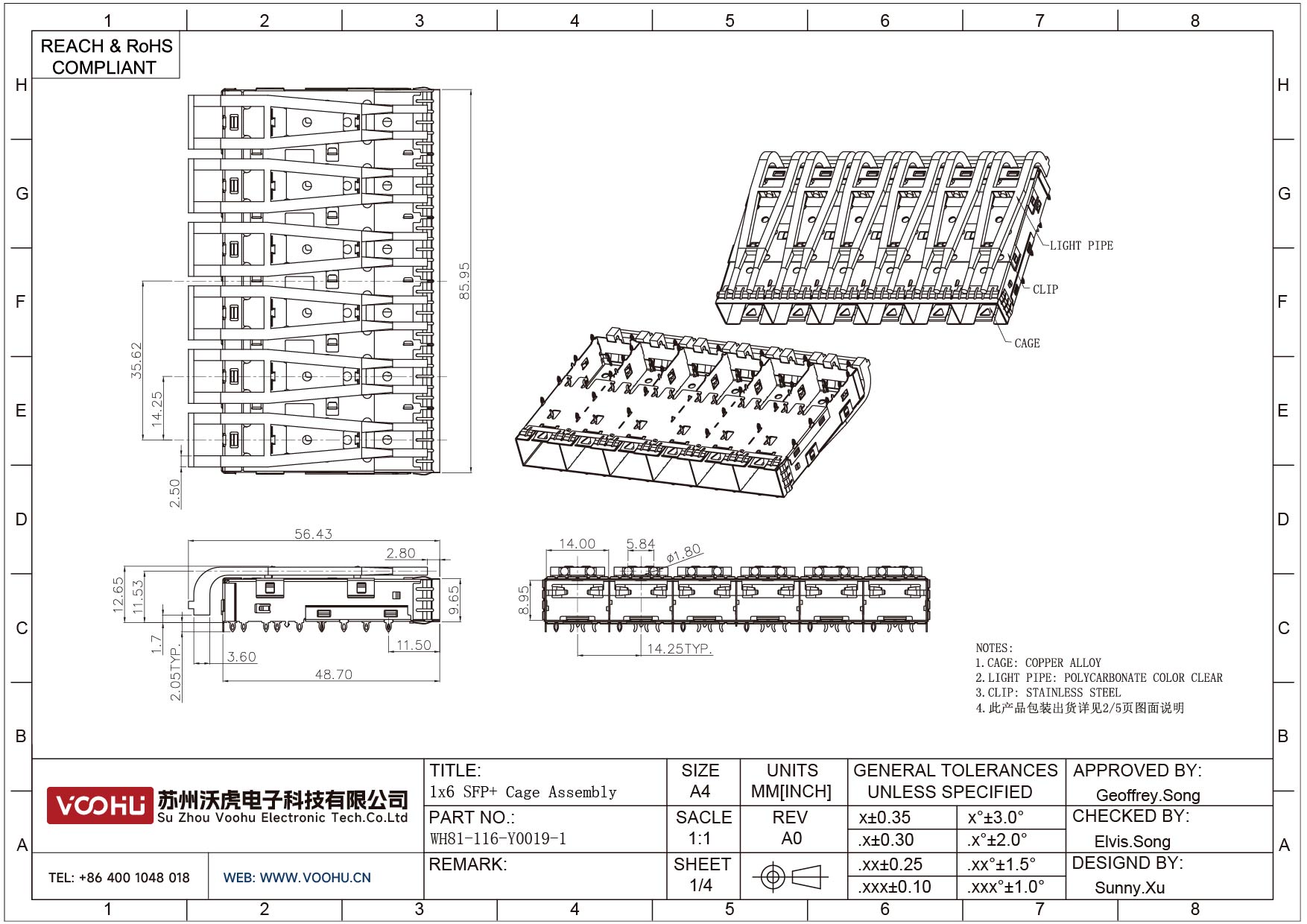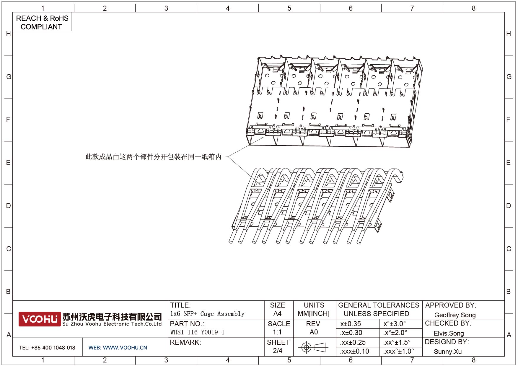 WH81-116-Y0019-1 SFP+ 1×6 10G Press-Fit Cage 光纤笼子