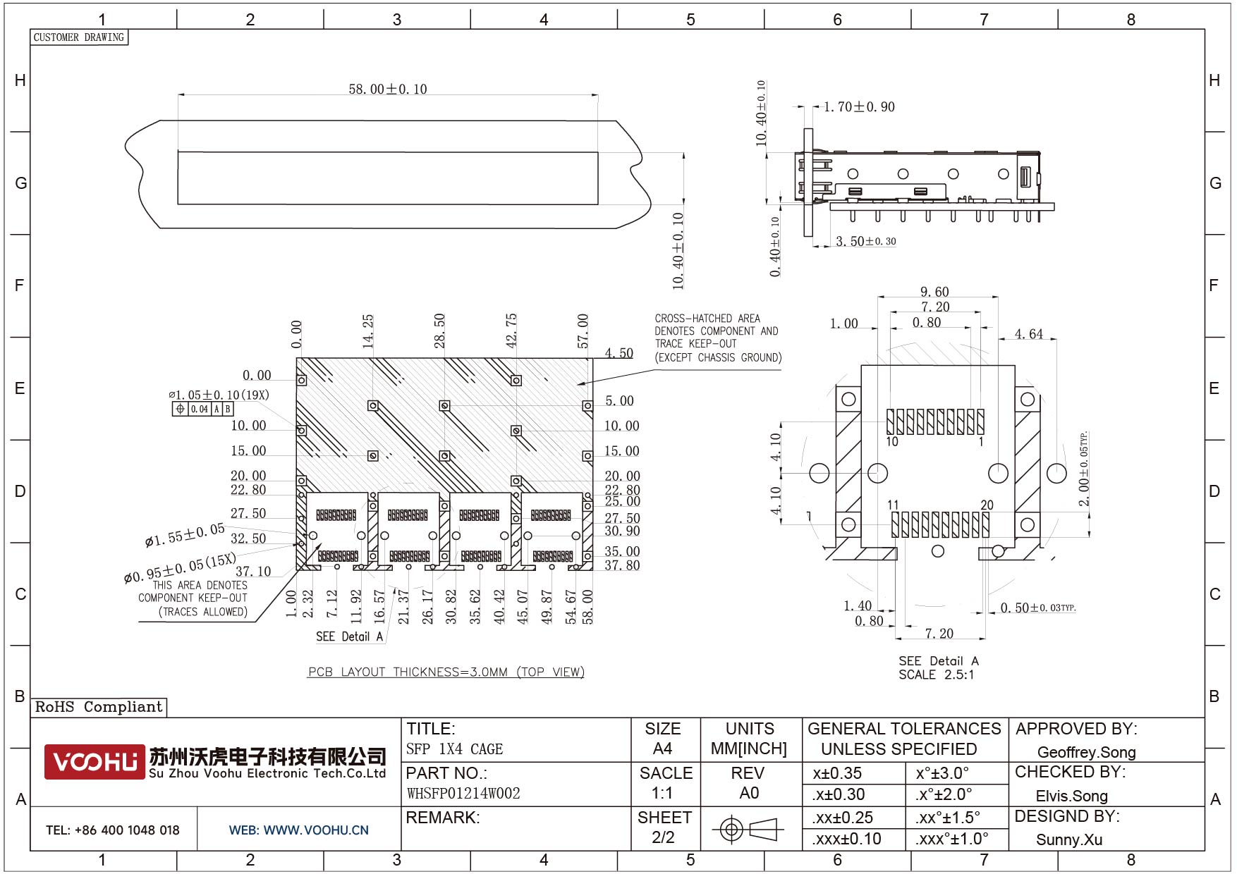 WHSFP01214W002 SFP 1 × 4 5G Cage Solder 光纤笼子