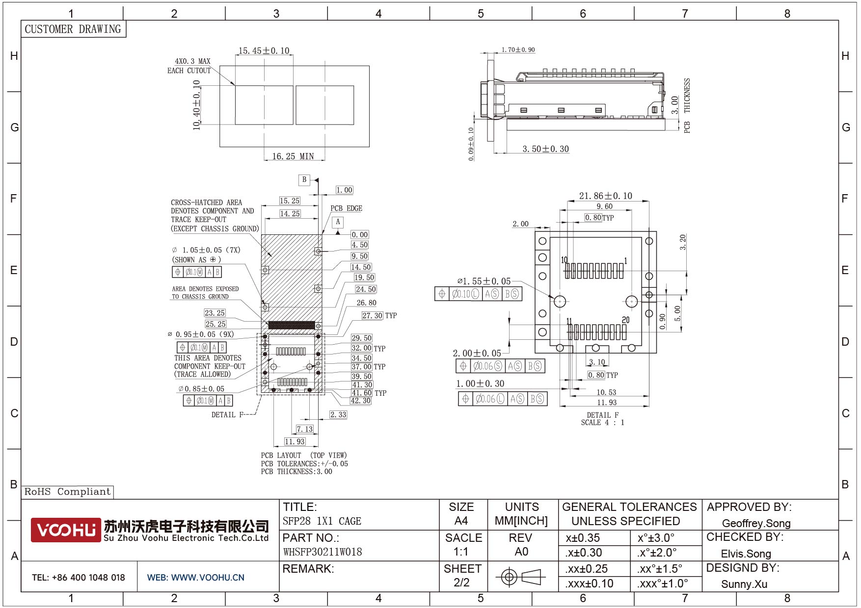 WH81-151-Y0002-1 1 × 1 10G SMD SFP镀金厚度15U Connectors