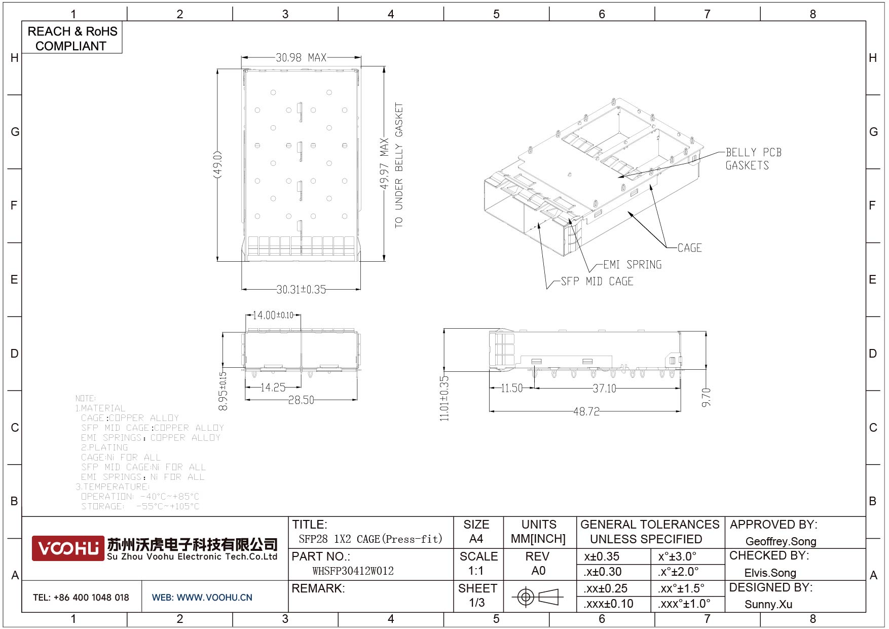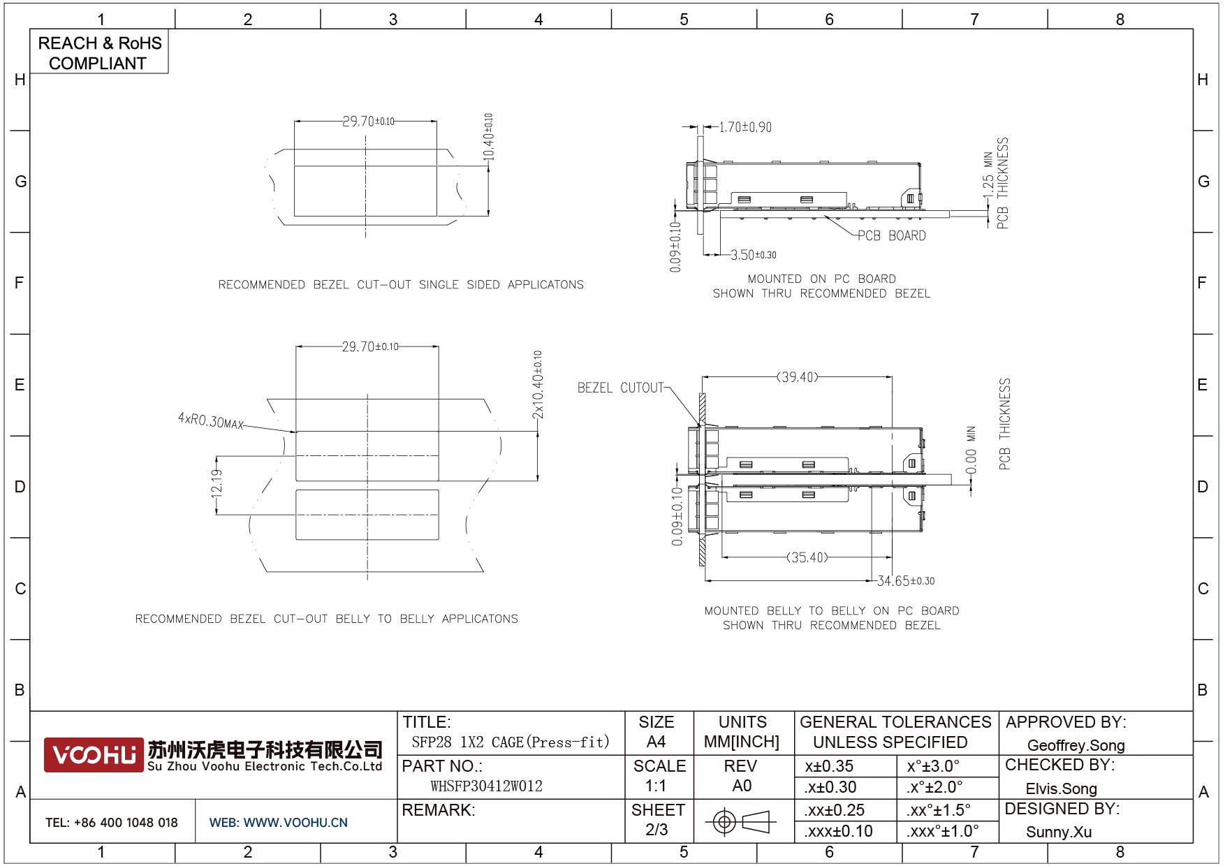 WHSFP30412W012 SFP28 1×2 25G Cage 光纤笼子