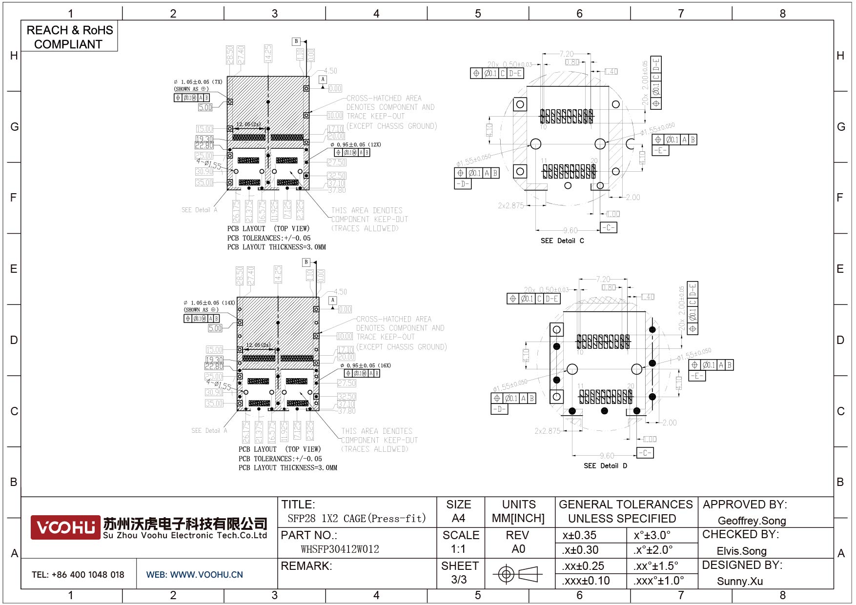WHSFP05624D005 SFP 2×4 5G Cage+Connector SFP镀金厚度15U 光纤笼子