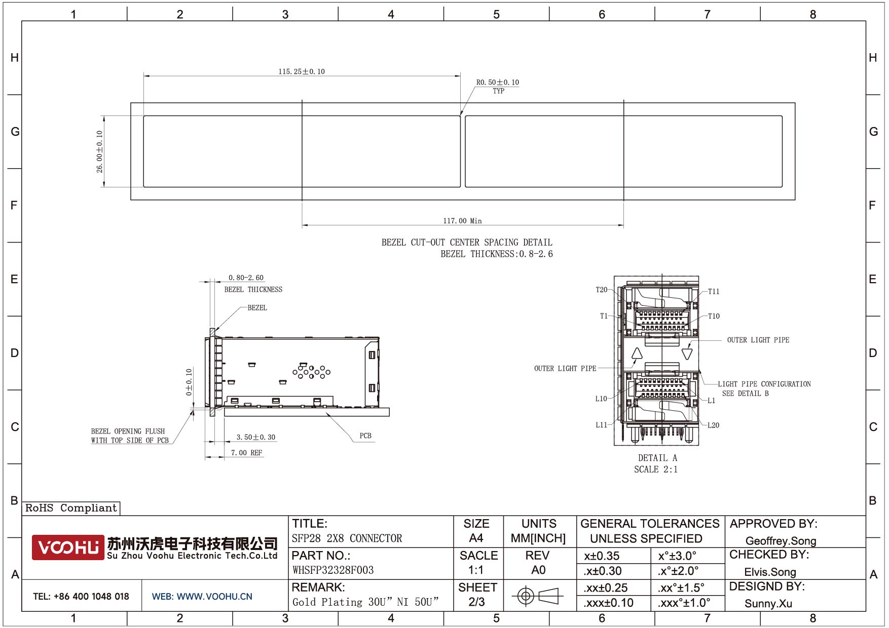 WHSFP32328F003 SFP28 2×8 25G Cage+Connectors 光纤笼子