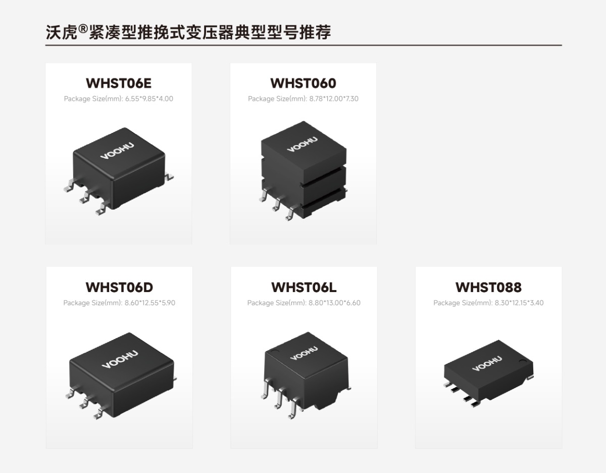 推挽式变压器是实现电压转换与电气隔离的核心元件。目前可提供的变压器系列包括060、06K、06E、06Q、088等,各系列在封装尺寸、引脚定义及电气参数上有所区别,以适应不同PCB布局需求。