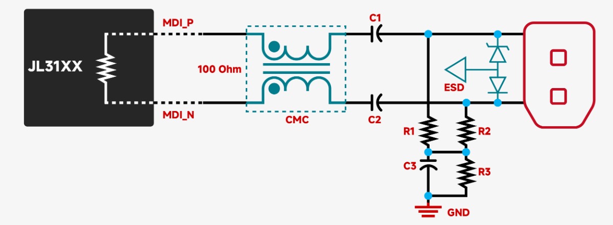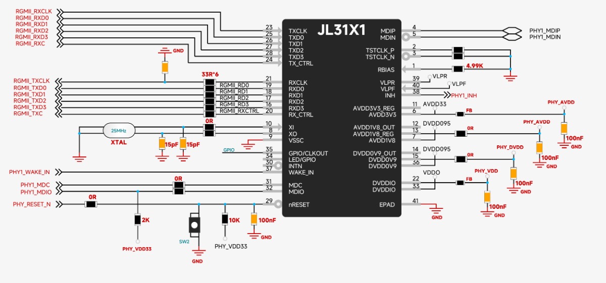 如下是接在JL31X1和SPE连接器之间的电子元器件: