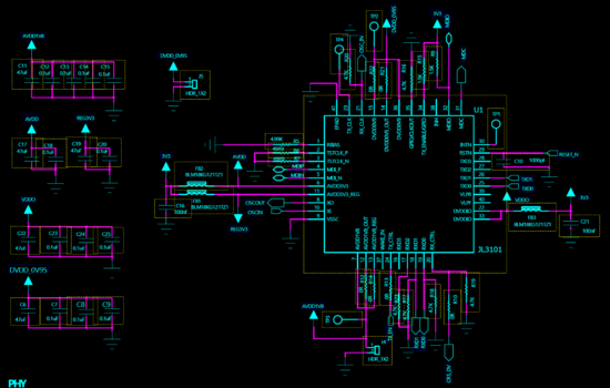 VDD_HV_B:以太网模块的供电电源为3V,连接到 VDD电源域