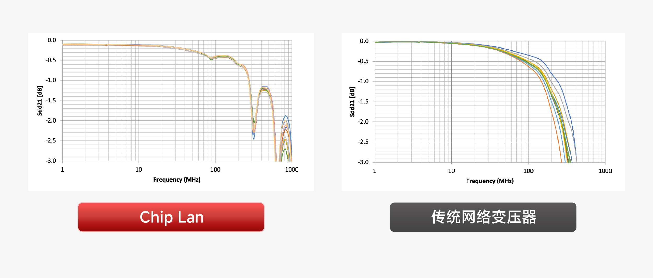 高共模阻抗在高频下具有优异的噪声抑制性能