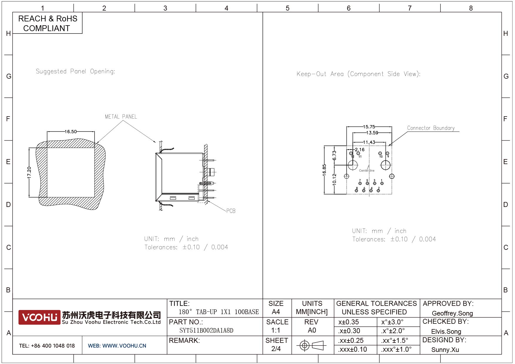 SYT1A11B048GWA1D 90° 侧面插入 开口朝下 1X1 100BASE RJ45