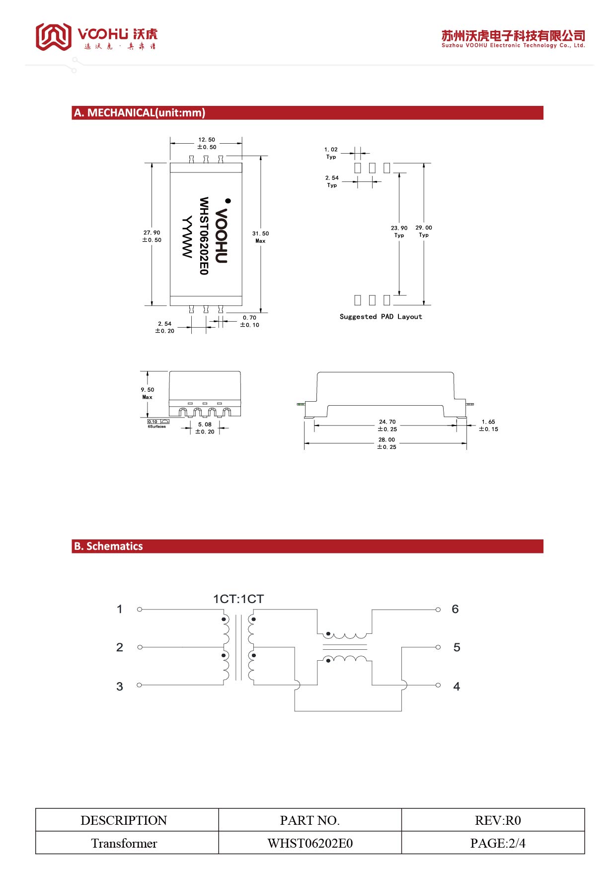 WHST06202E0 Single Working Voltage1500 Isolation6400VDC BMS ISOLATION TRANSFORMER