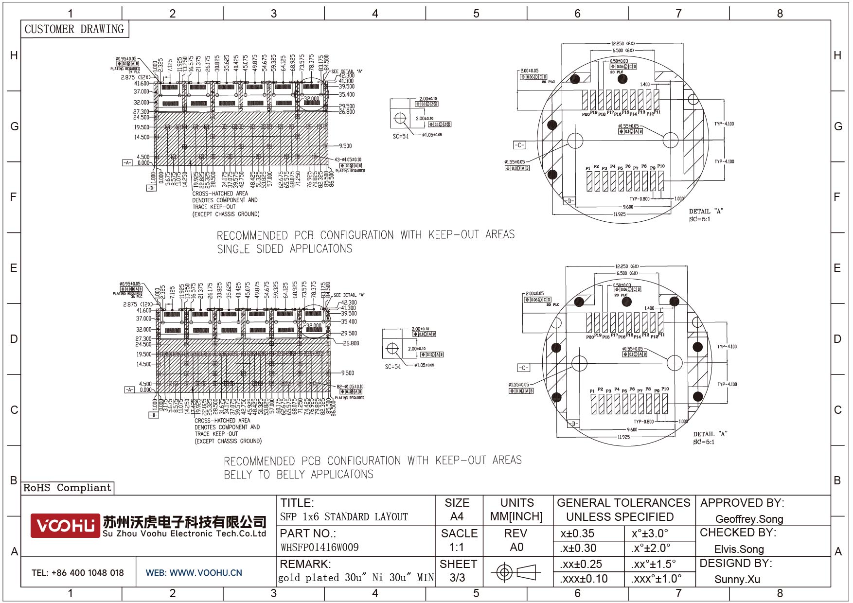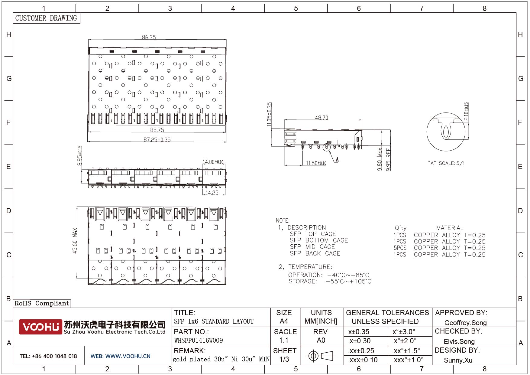 WHSFP01416W009 SFP 1×6 5G Cage Press-Fit 镀镍30U 光纤笼子