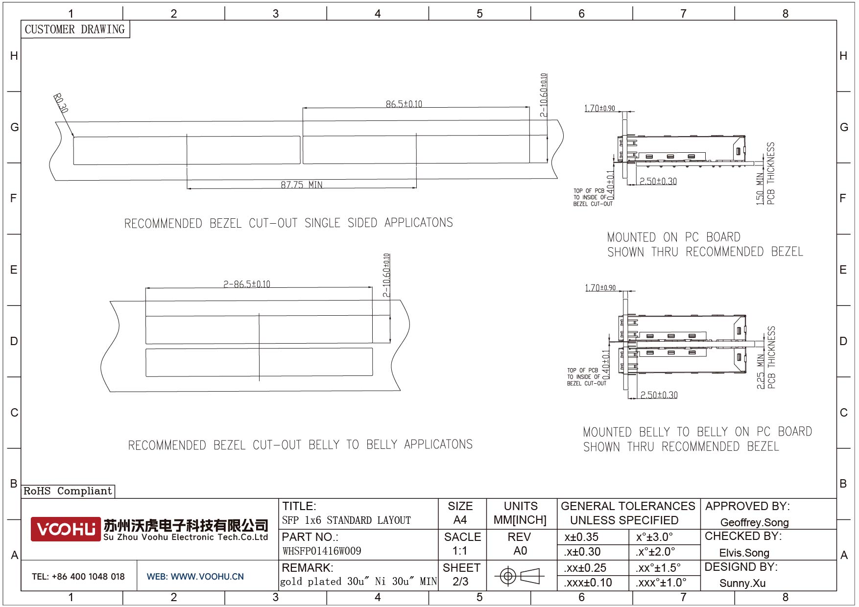 WHSFP00612W003 SFP 1 × 2 5G Cage Press-Fit 光纤笼子
