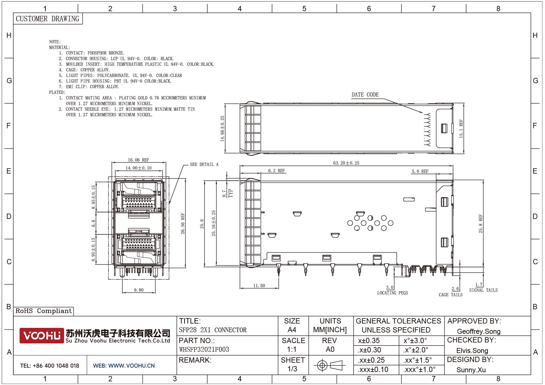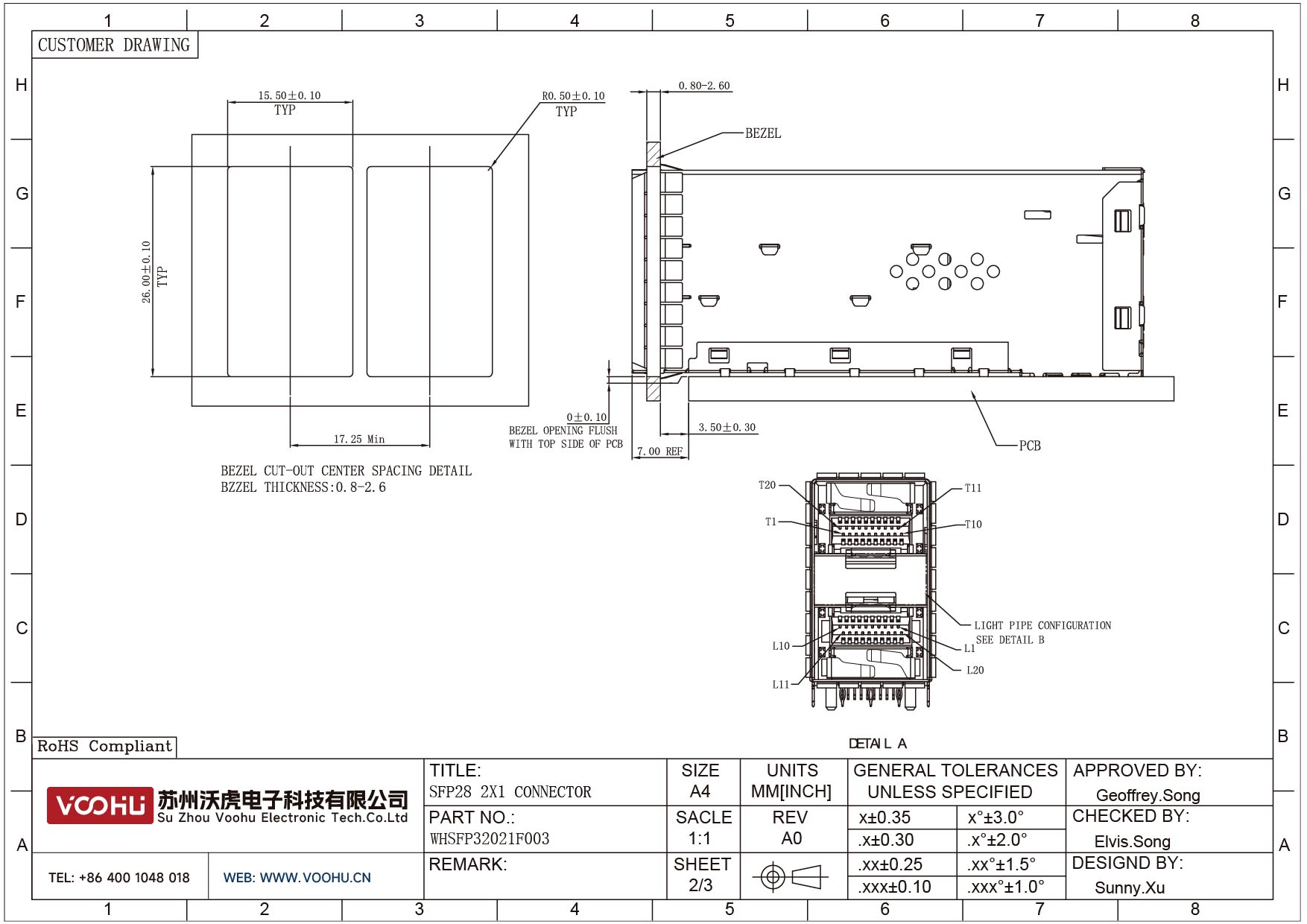 WHSFP32021F003 SFP28 2×1 25G Cage+Connectors 光纤笼子