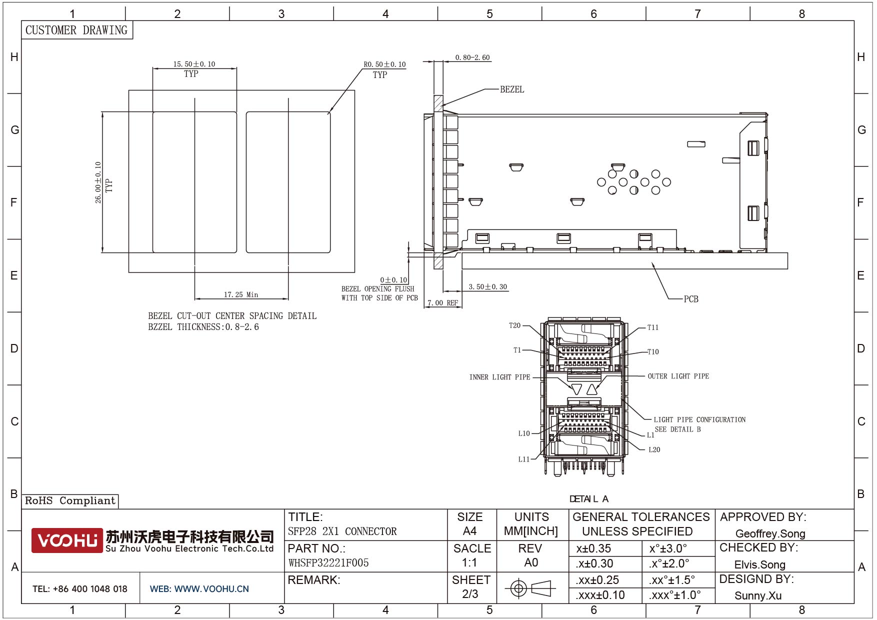 WHSFP32221F005 SFP28 2×1 25G Cage+Connectors 光纤笼子