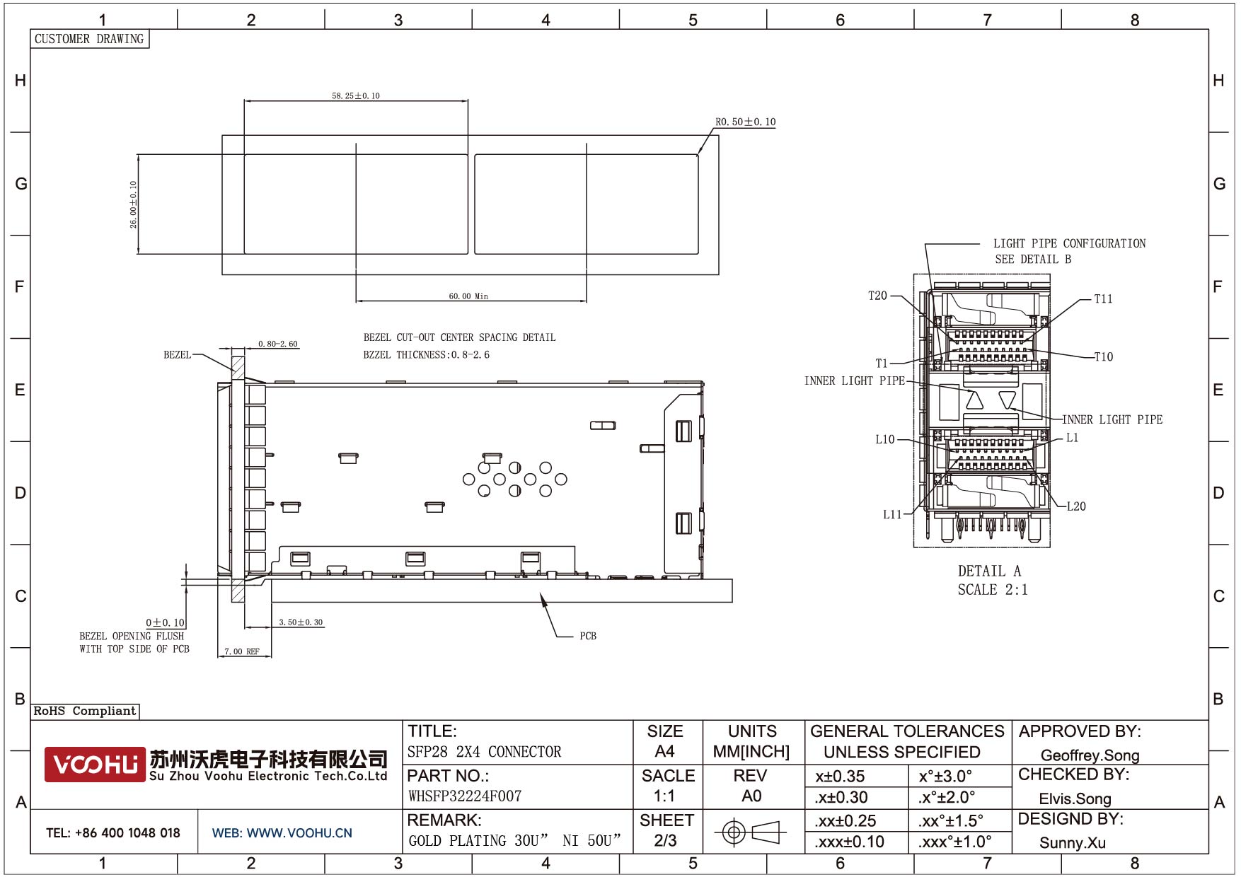 WHSFP32224F007 SFP28 2×4 25G Cage+Connectors 光纤笼子
