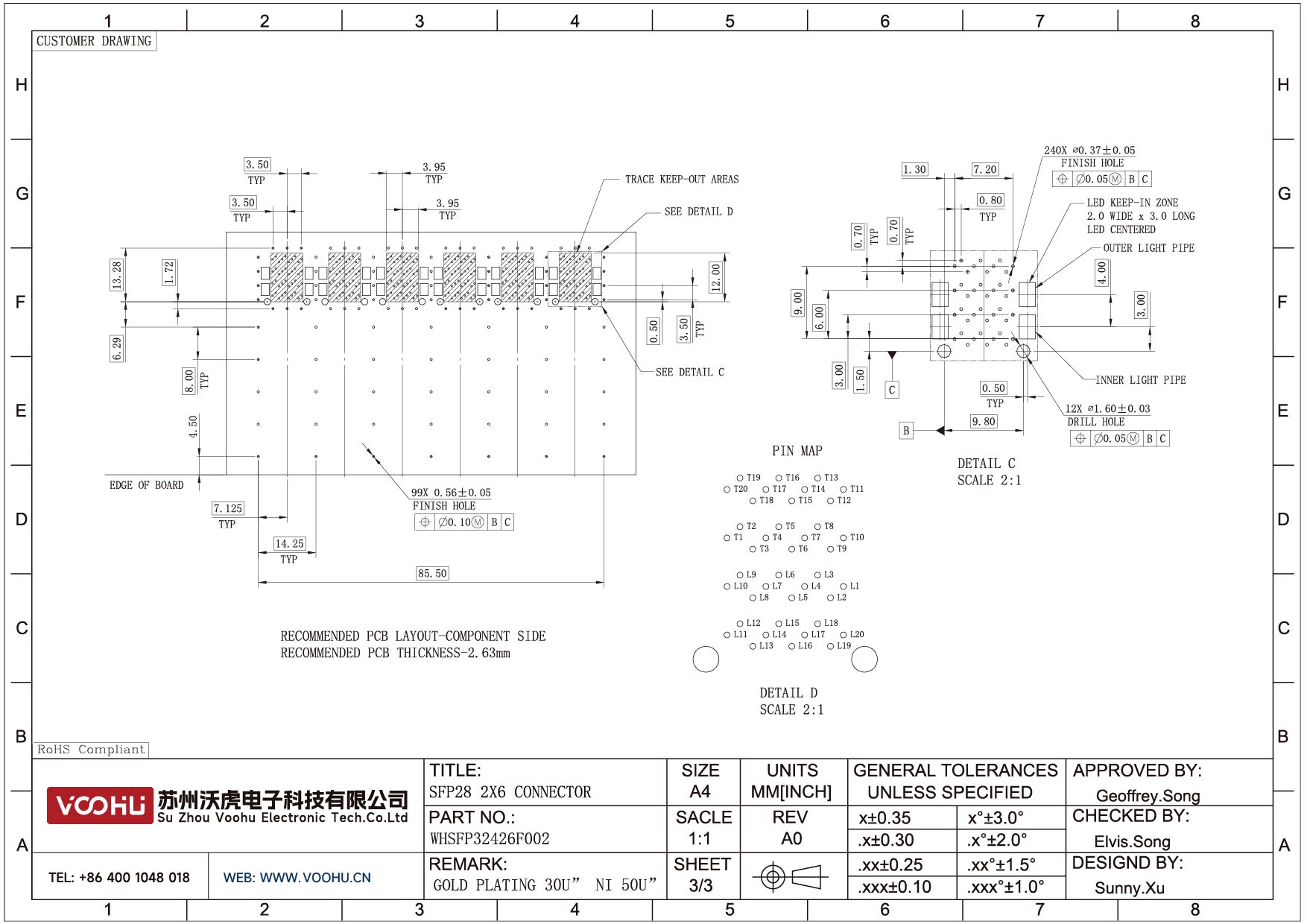 WHSFP05825F008 SFP 2×5 5G Cage+Connector SFP镀金厚度30U 镀镍 30U 光纤笼子