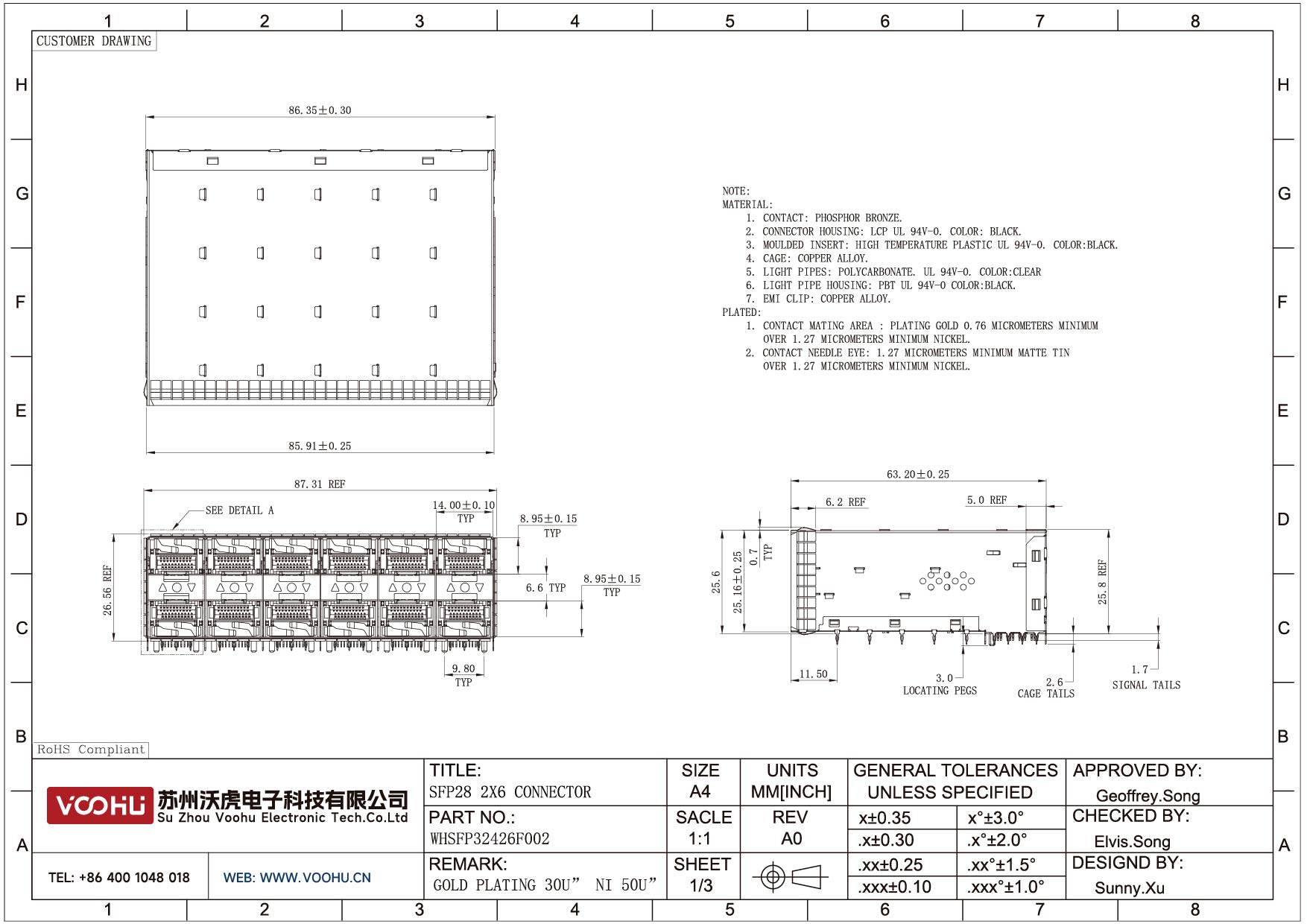 WHSFP32426F002 SFP28 2×6 25G Cage+Connectors 光纤笼子