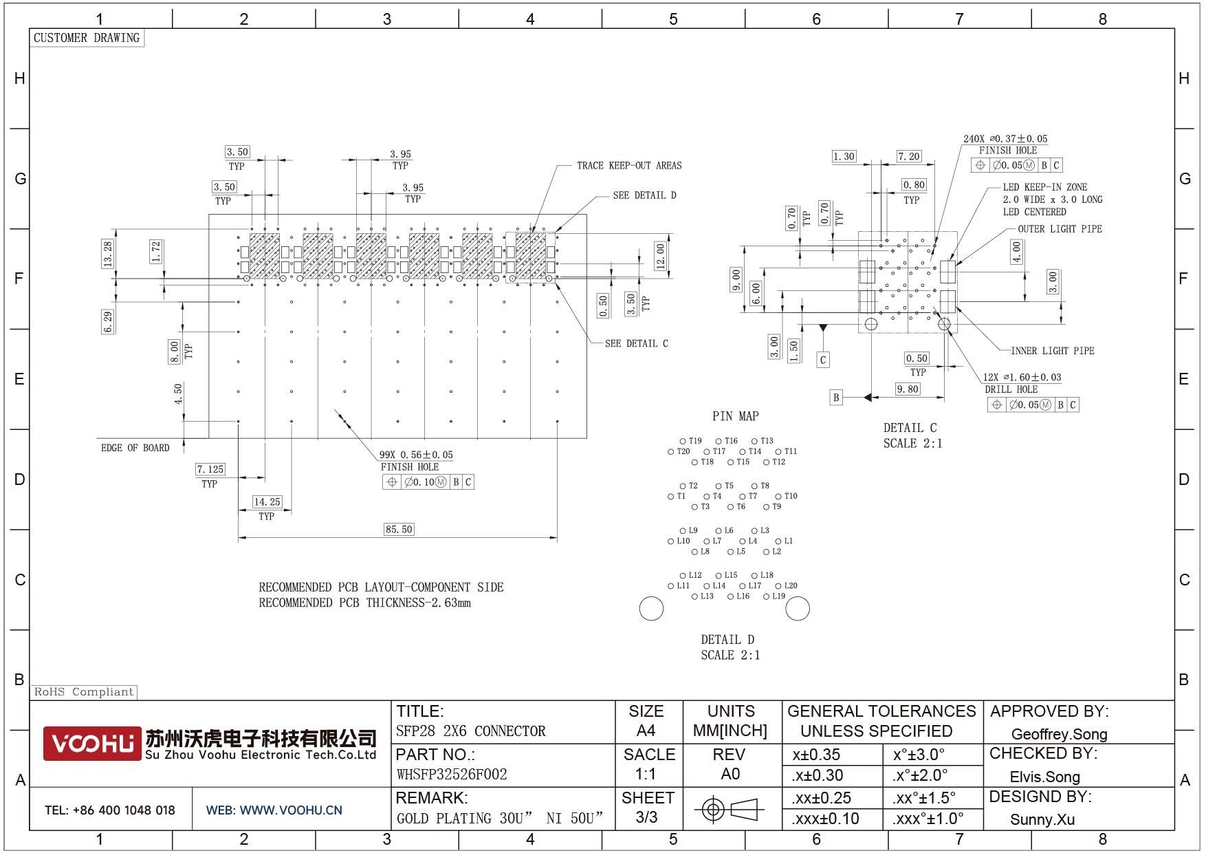 WHSFP32526F002 SFP28 2×6 25G Cage+Connectors 光纤笼子