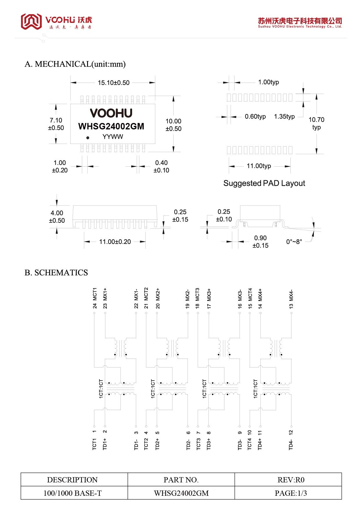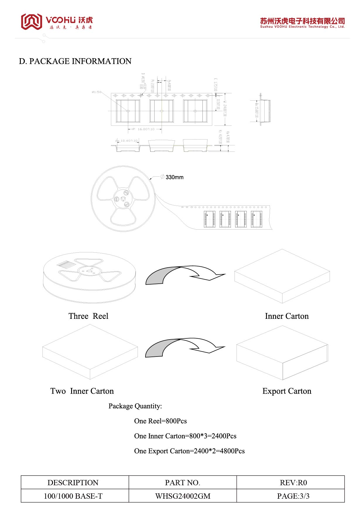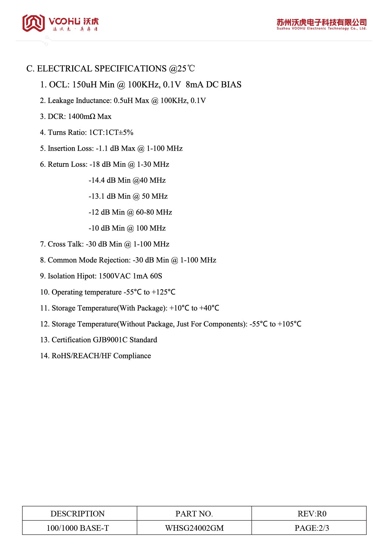 WHSG24002GM 单口 SMD 千兆 PIN24 non-PoE 以太网变压器